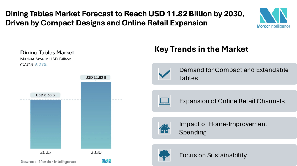 Mordor Intelligence has published a new report on the Dining Tables Market, offering a comprehensive analysis of trends, growth drivers, and future projections.