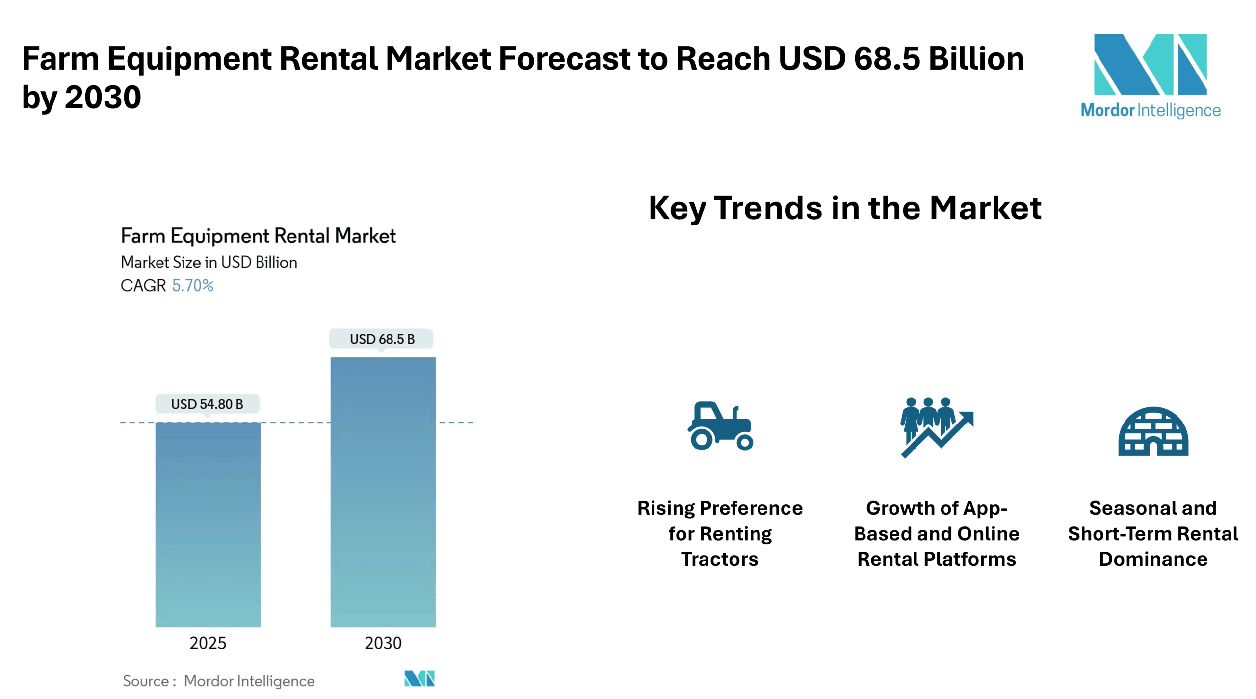 Home Press ReleasesFarm Equipment Rental Market Forecast to Reach USD 68.5 Billion by 2030, Driven by Tractor Demand, Digital Platforms, and Small Farm Mechanization – Mordor Intelligence