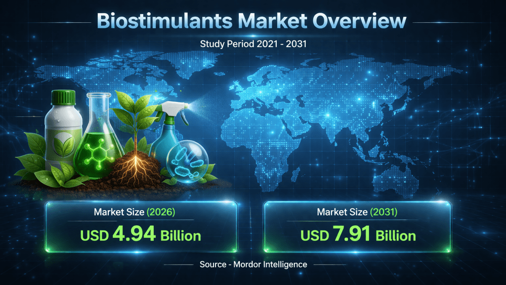 The growth of the biostimulants market is attracting significant attention as agriculture shifts toward sustainable and efficient crop production methods. According to industry analysis by Mordor Intelligence, the biostimulants market size was valued at USD 4.5 billion in 2025 and is projected to grow from USD 4.94 billion in 2026 to reach USD 7.91 billion by 2031, with a CAGR of 9.85% during the forecast period. This consistent growth in the biostimulants market reflects increasing awareness among farmers about enhancing crop performance while reducing reliance on traditional chemical inputs.