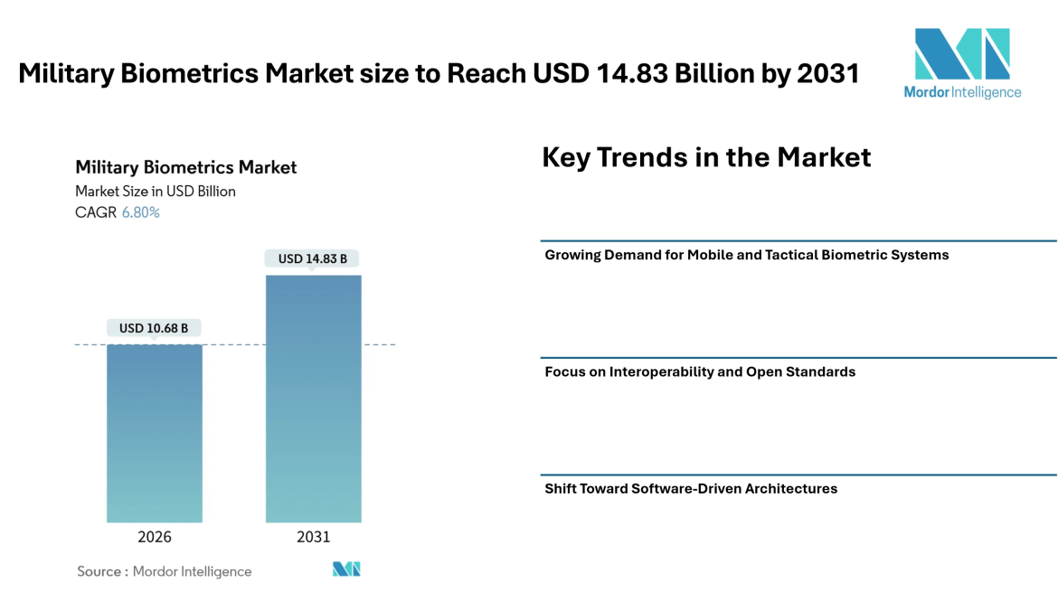 According to Mordor Intelligence, the military biometrics market size is expected to reach USD 10.68 billion in 2026 and grow further to USD 14.83 billion by 2031, reflecting consistent market growth over the forecast period. This expansion is supported by rising concerns around cross-border threats, irregular warfare, and the need for secure authentication systems in sensitive operations.