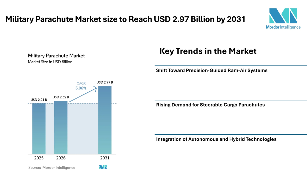 Military Parachute Market size to Reach USD 2.97 Billion by 2031 Driven by Precision Systems and Rising Defense Demand - Mordor Intelligence
