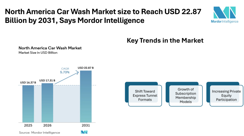 North America Car Wash Market size to Reach USD 22.87 Billion by 2031, Says Mordor Intelligence